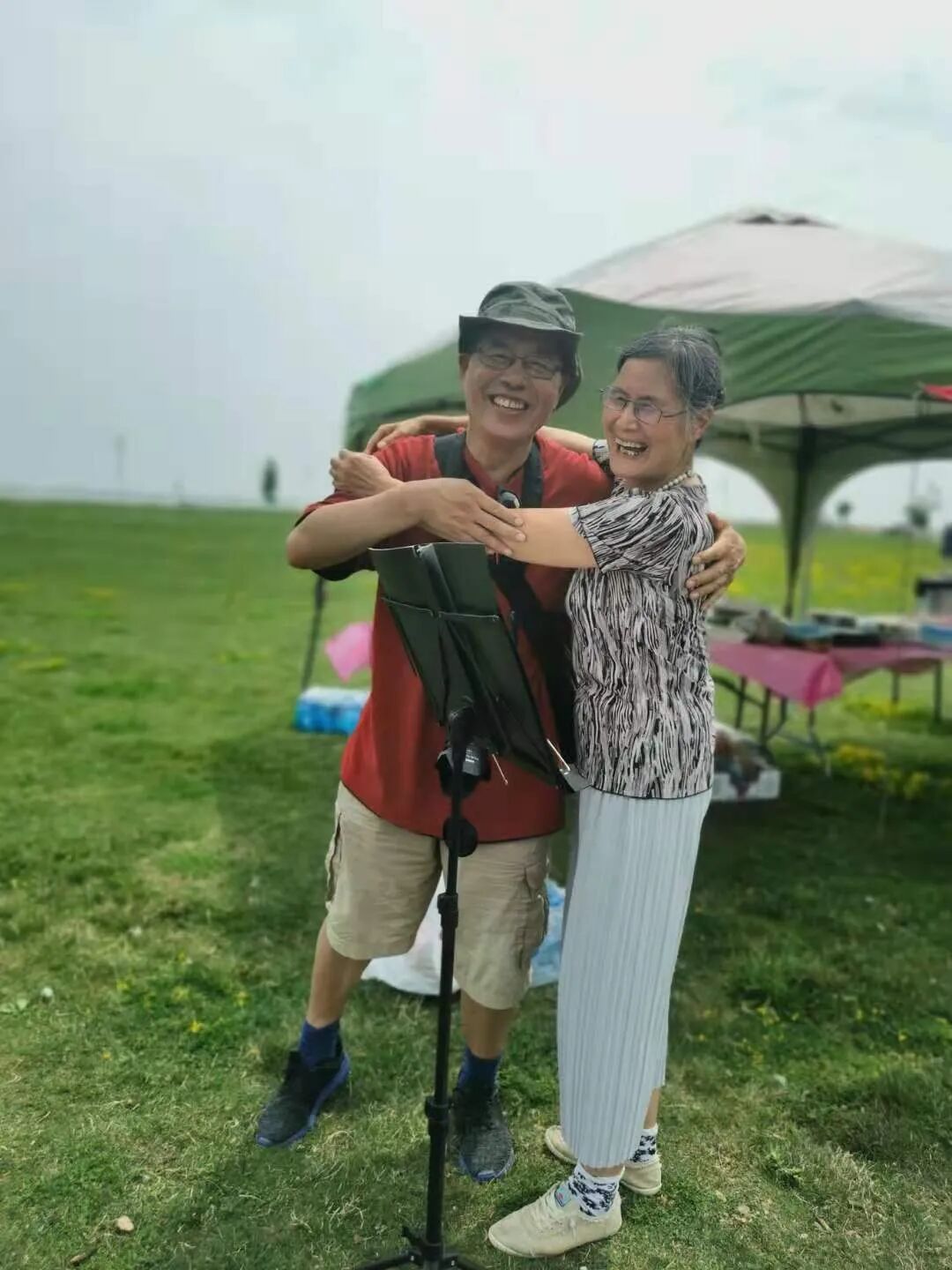 尽管是阴天,夏天的高温中人透出一股潮湿气,团员们还是兴致勃勃,在杨宪钧团长的带领下开始了八段锦,24式太极拳,在何林,平湖夫妇带领下挑起了”我的九寨”,在杨团的带领下跳了广场舞。