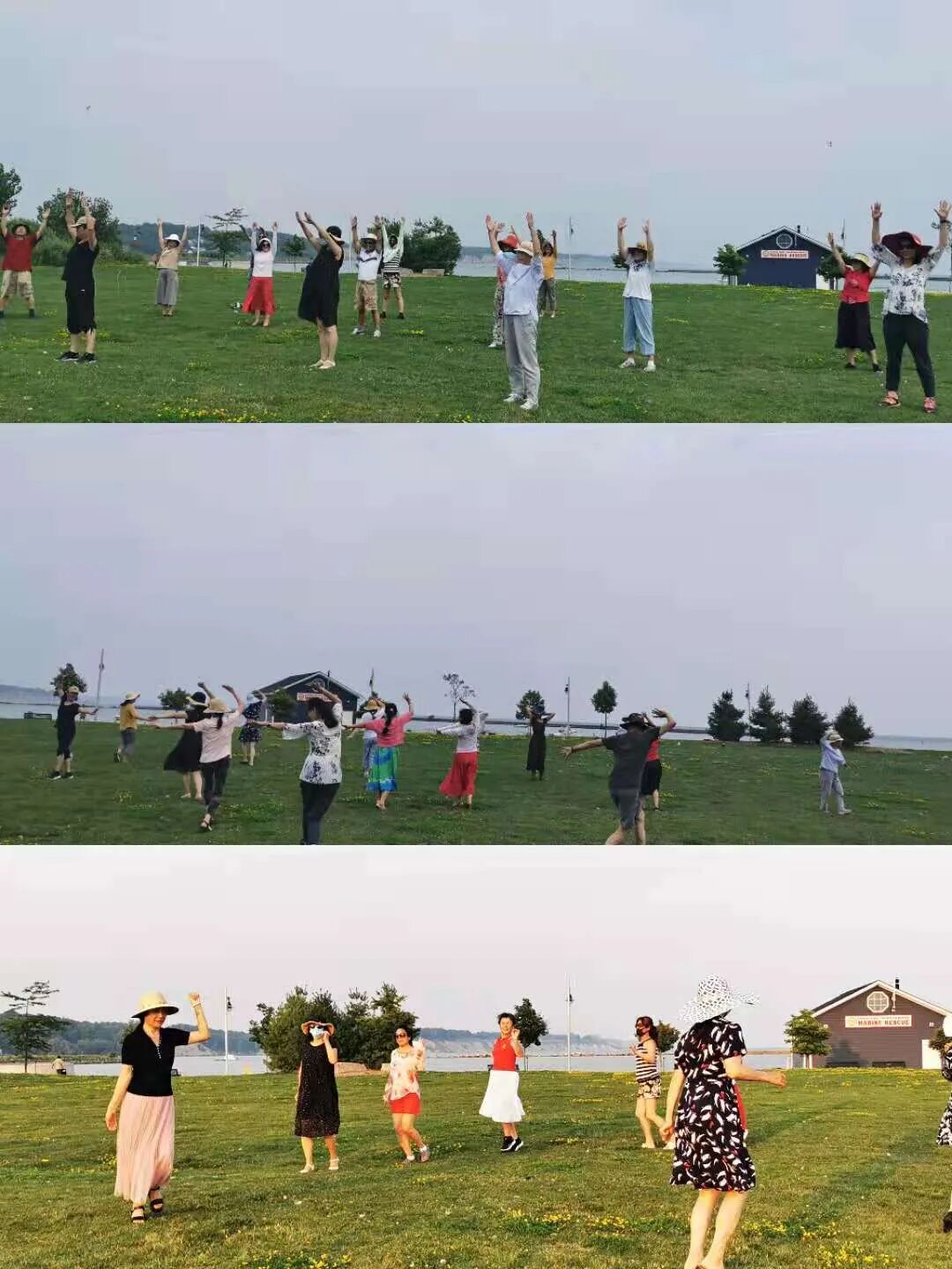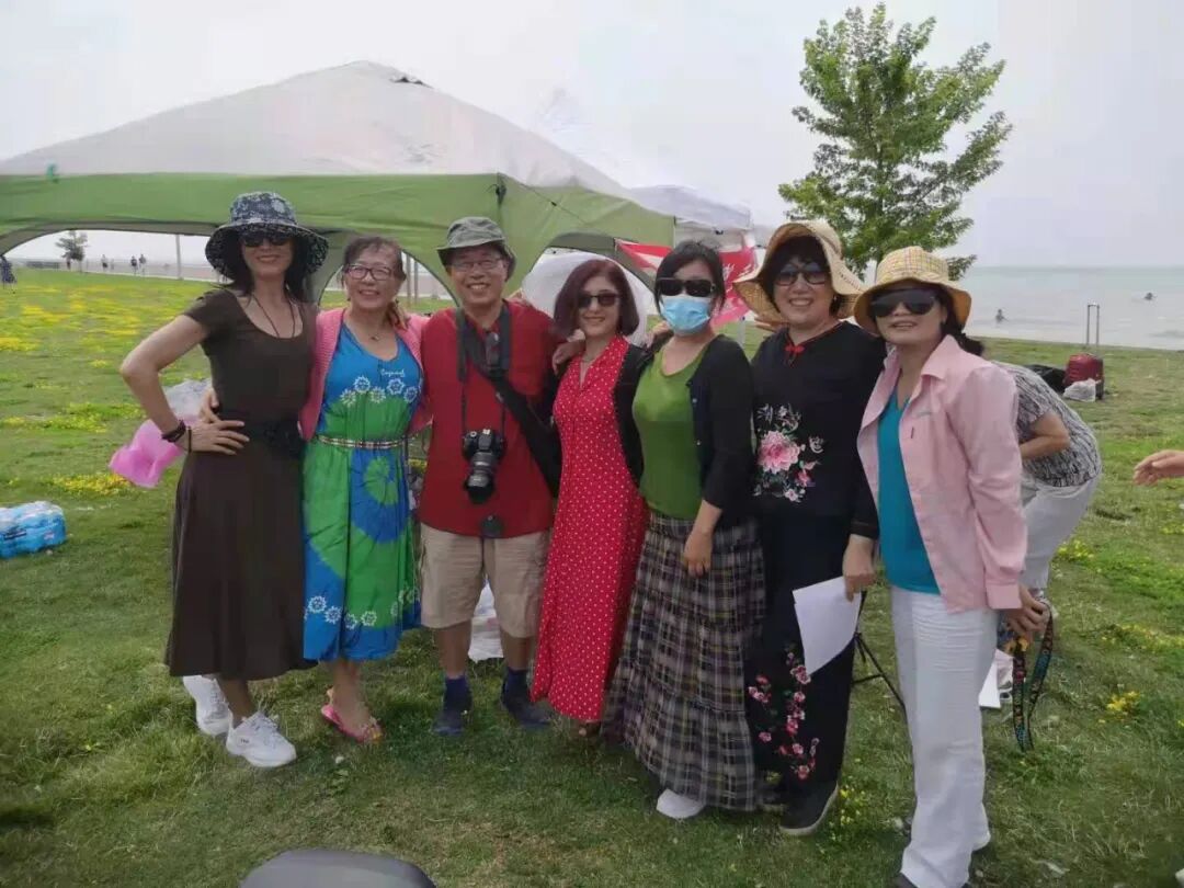 沿着湖的港湾走入小镇,除有机会欣赏各家的私家游船,看到了特色桥面起落,更有机会登上小火车。瞧小婷,洪生二位学生穿黄衣,戴黄帽,站在黄绿色的火车上,在黄团带领下,充分体现了咱爱乐合唱团的本色。 从小镇回来,我团最年长的霍团员冲向沙滩,又过了一把湖中游泳的快乐。多数团员有吃起的晚餐,苏晓婷,我们的大总管为大家准备了丰盛的晚餐,饱餐后的团圆又在美女张芳的带领下跳起了锅庄舞。跳锅庄舞时,见到团中笑容最灿烂的孙新文先生,一个人默默的将收好的帐篷搬回车中。团中每个人都在尽其所能,默默付出。参加今天活动的还有我们的嘉宾团员,Guelph的倪强夫妇,网课的新团员,来自伦敦的美女团员们。太阳快落山了,大家又在沙滩前夕阳太阳西霞下了美丽的倩影。大家依依不舍地告别,期待下一次再相聚。 感谢滑铁卢华人联合会FHACCSY Funding对本次活动的支持,让我们一起度过愉快的一天。 欢迎热爱声乐的人士加入我们这个充满爱和歌声的大家庭 联系人:黄新团长 电话:1-519-590-2689 微信号:Cyhx_2006